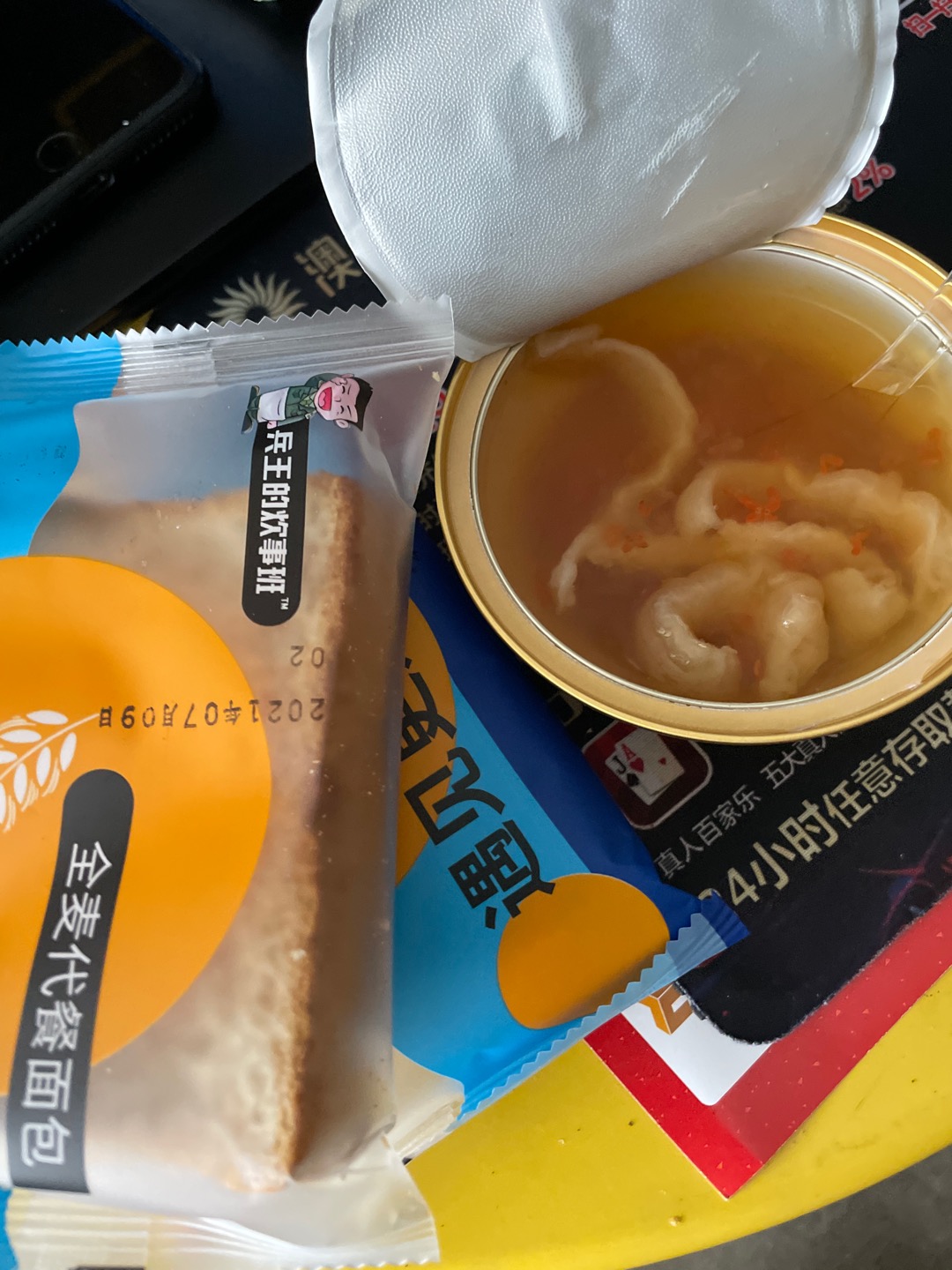 早餐吃两片全麦吐司面包+一碗花胶