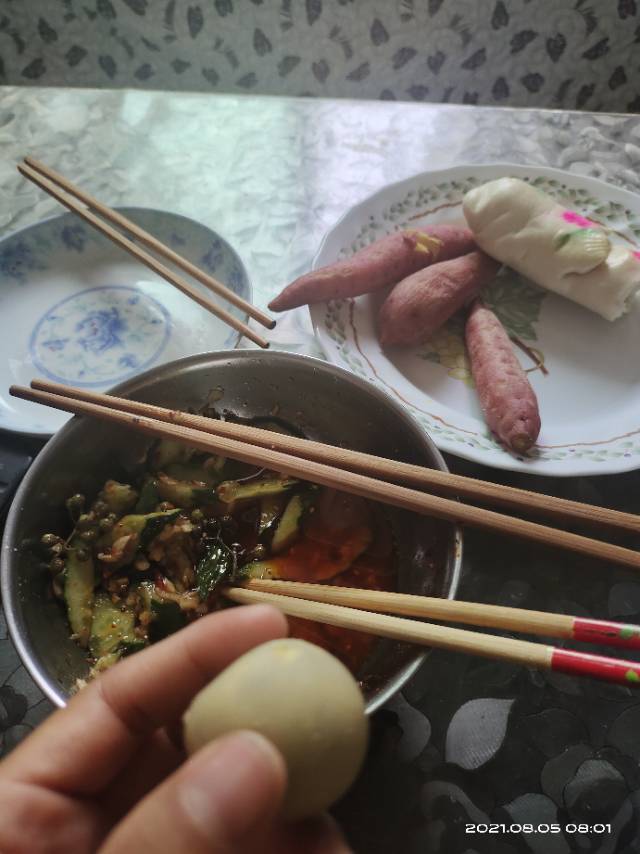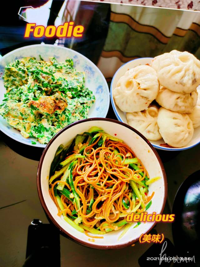 #第3天# 早,红薯鸡蛋西红柿。加餐,西红柿奇异果。午,包子荞面饸络+韭菜鸡蛋。晚,外食米饭炒面蒜蓉蒸鱼