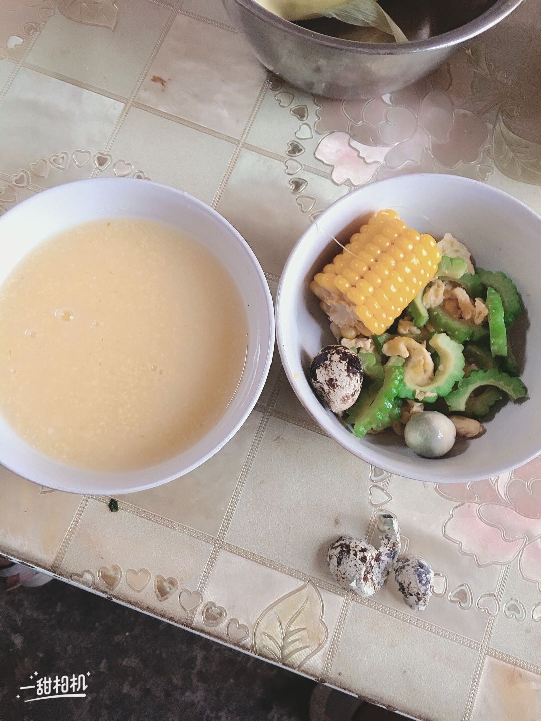 三公里慢走,玉米粥玉米苦瓜炒鸡蛋加油姐妹们