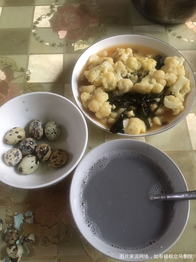 早餐黑豆浆,鹌鹑蛋水煮菜花。今日运动5公里