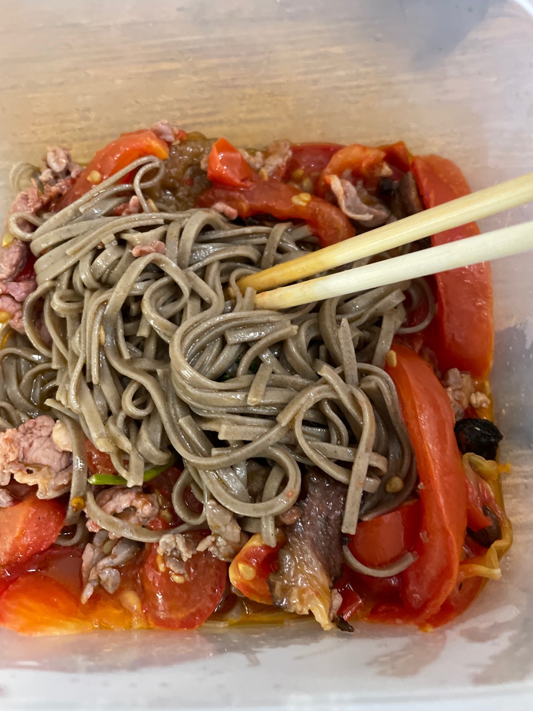 #第17天# 午餐,早上煮了荞麦面带出来,番茄炒牛肉