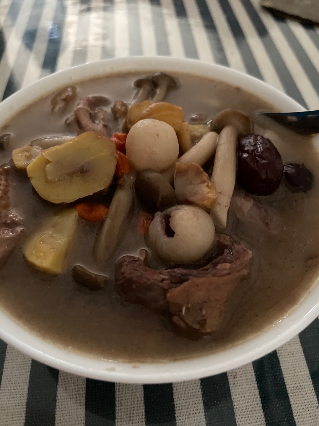 #第2天# 早餐吃昨晚炖的鸽子板栗汤