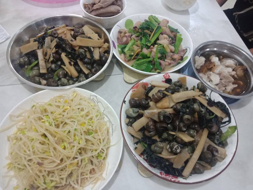 晚餐打卡,黄豆芽,紫苏酸笋石螺,🐙