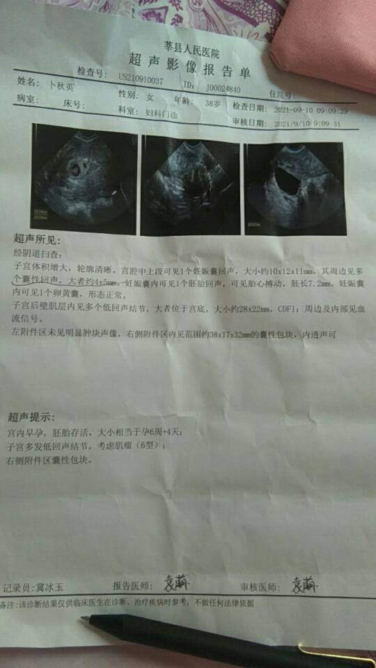 恭喜你!胚囊落户子宫并生根发芽,还有心管搏动,目前按原计划用药黄体酮,地屈孕酮,补佳乐,注意别感冒,别接触有毒有害物质,两周复查B超,胎芽胎心好就可以建保健手册了。