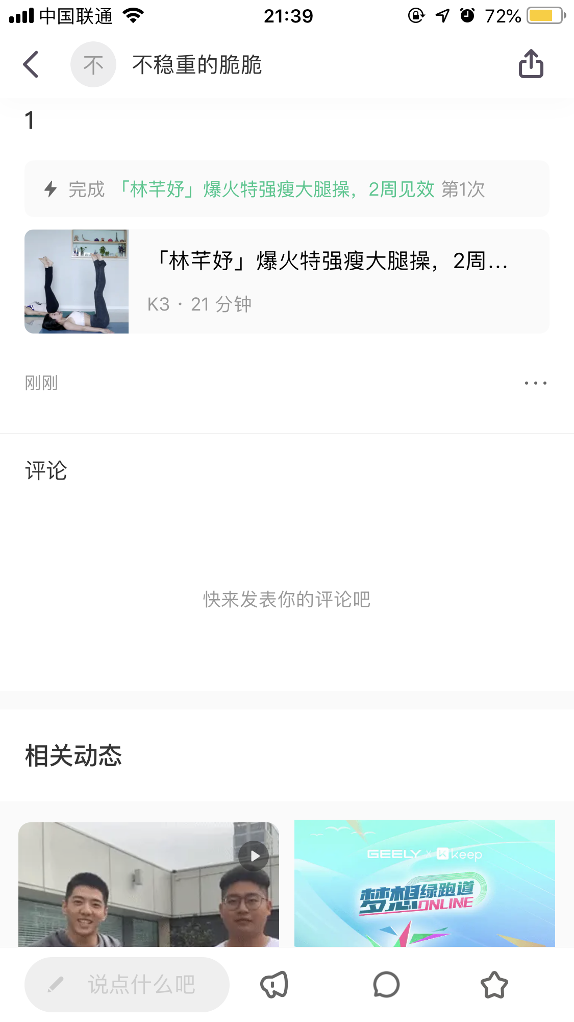 今天做了林芊妤的瘦腿运动,试下针对性运动