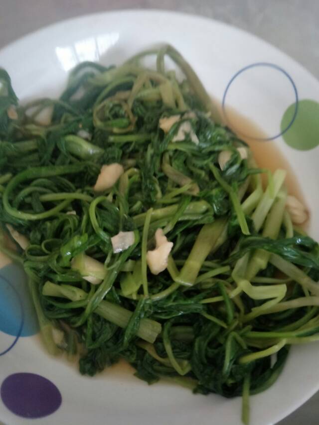 晚餐打卡,空心菜,炒的酸,鸡腿,