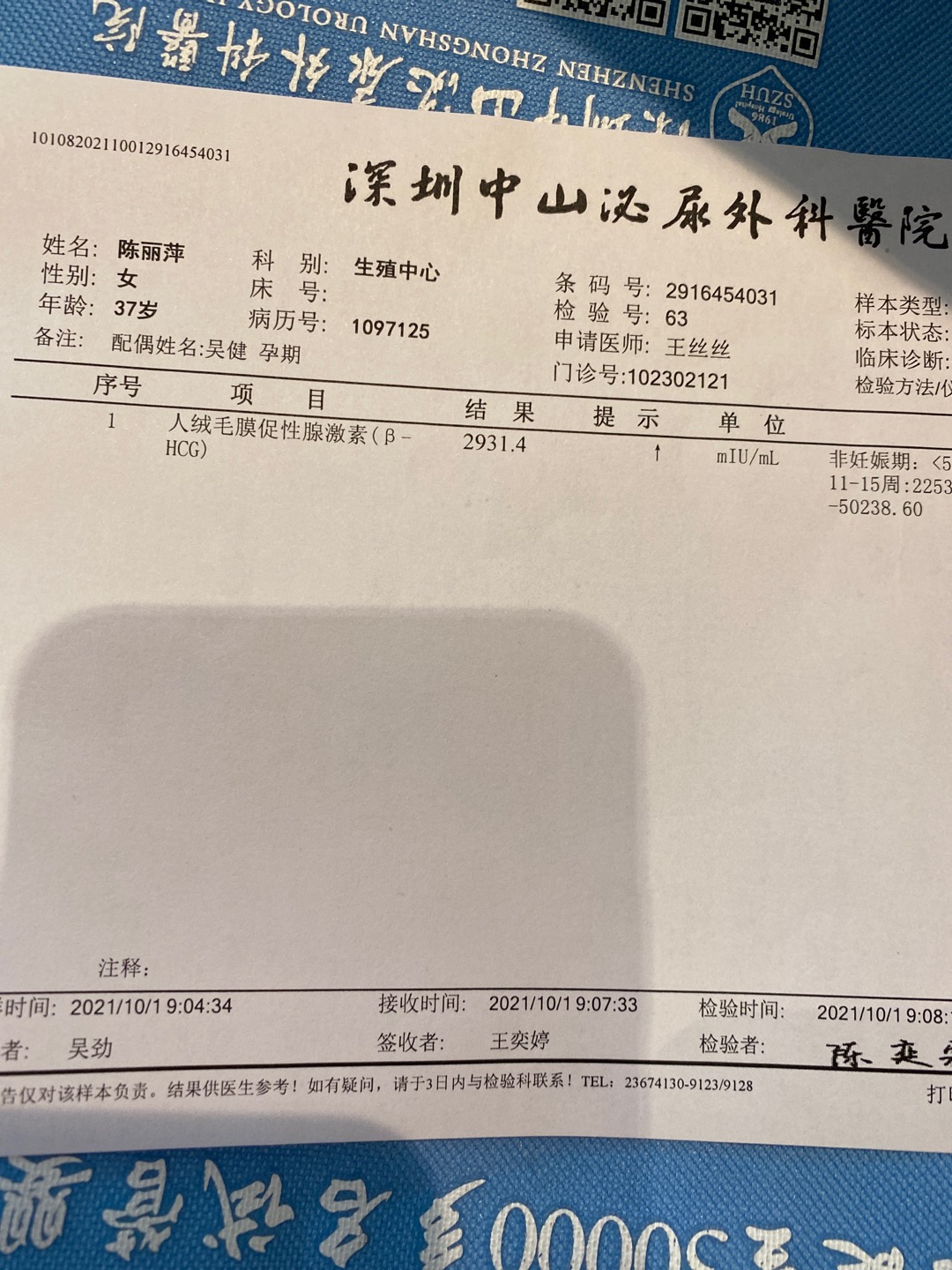 你好这是我移植囊胚第18天的B超报告和hcg