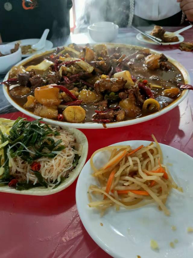 今天吃的大盘鸡,味道不错哦,老板请的😲