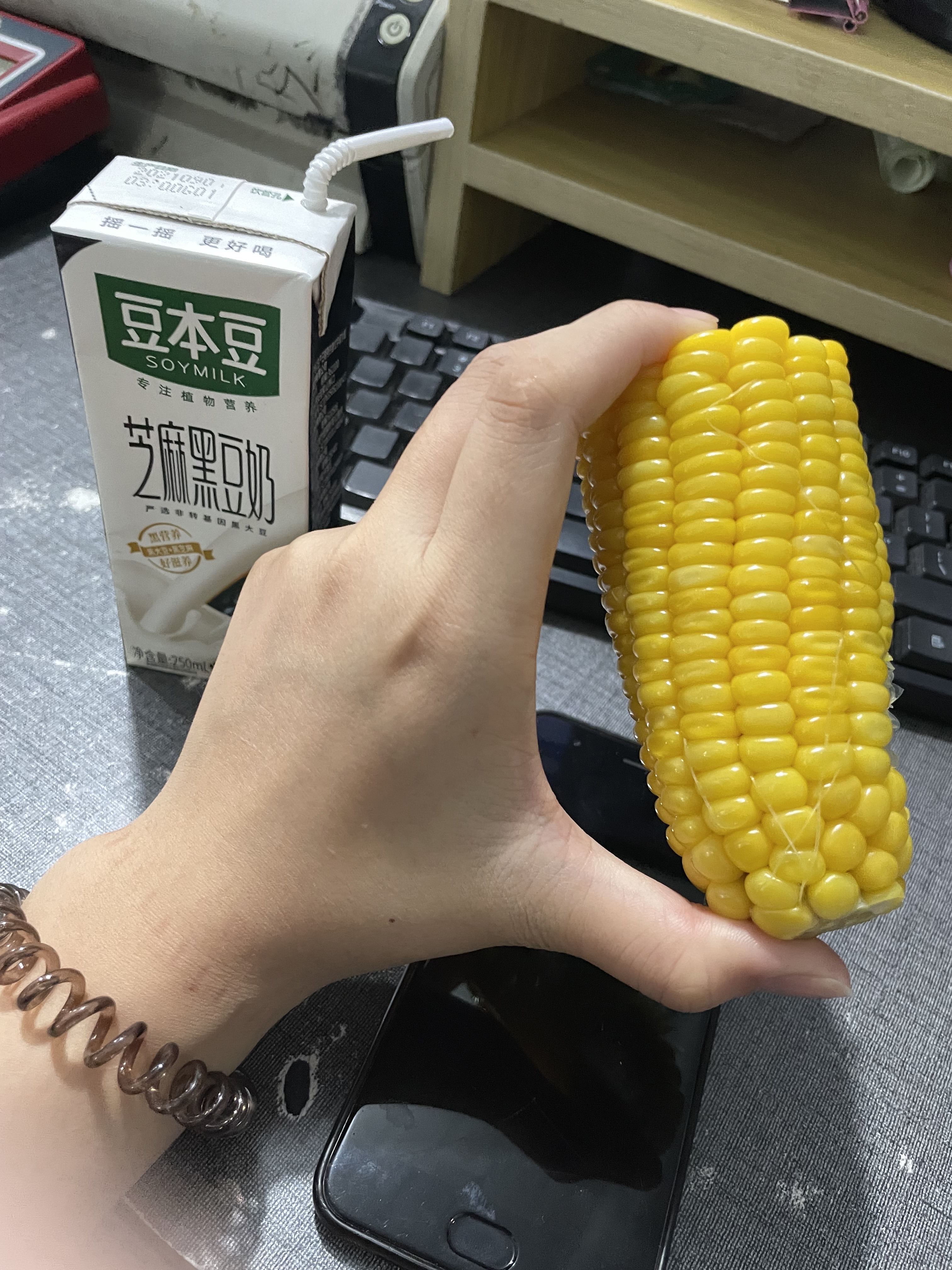 #第3天# 59kg早餐半截玉米+两个茶叶蛋蛋白+半个蛋黄芝麻黑豆奶