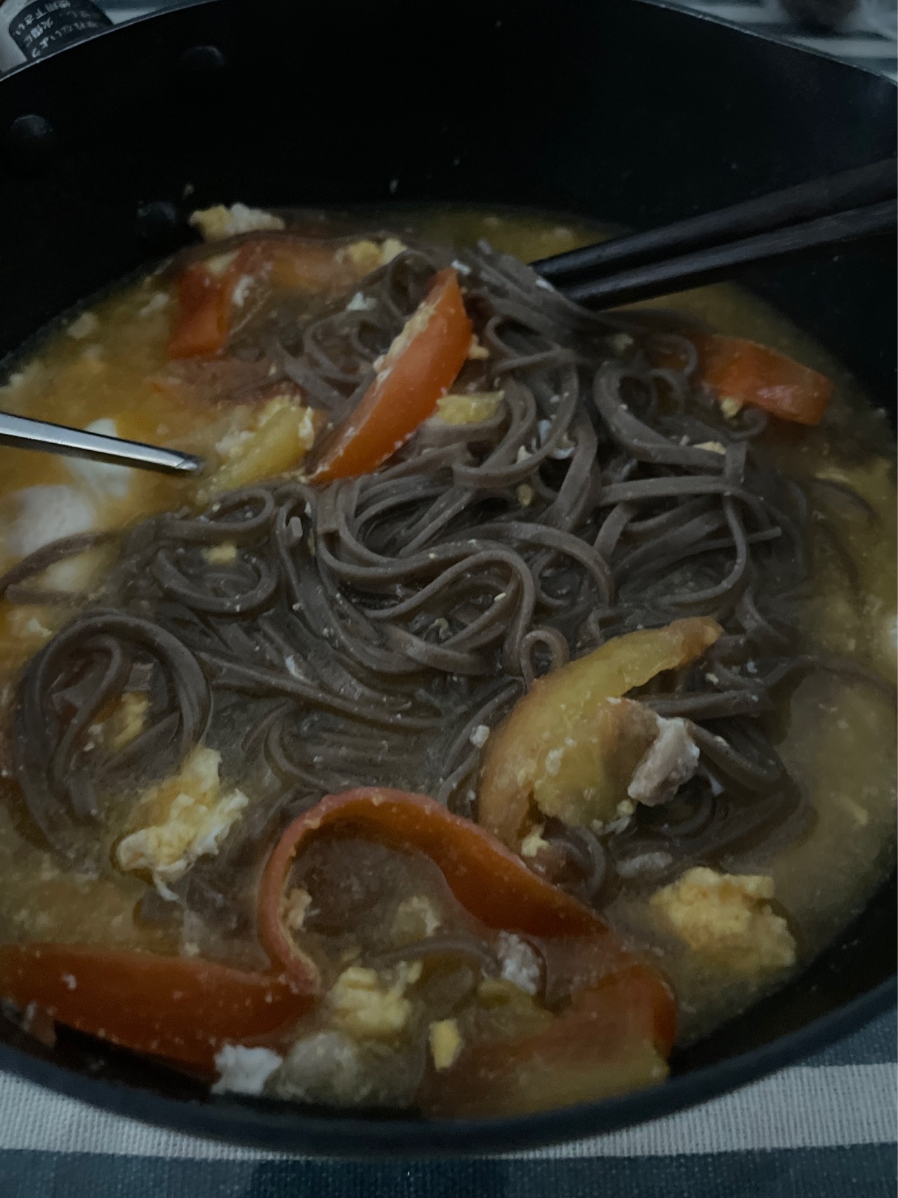 #第3天# 中午煮荞麦面吃,加两个鸡蛋