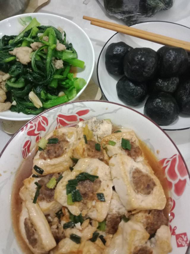 晚餐打卡,菜心,客家酿豆腐,艾糍