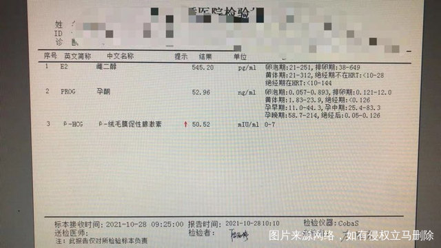 2021.10.28是我们移植两个五细胞2里级胚胎的第八天,这是我们在别的医院抽血检查的结果,是不是快要有好消息了?最近也一直在网上查五细胞胚胎移植成功率大不大?也有在打黄体酮,还有医院开的黄体酮凝胶,这个可贵了,一盒14支近一千块钱了,懂的人帮我看一下现在怎么样了?