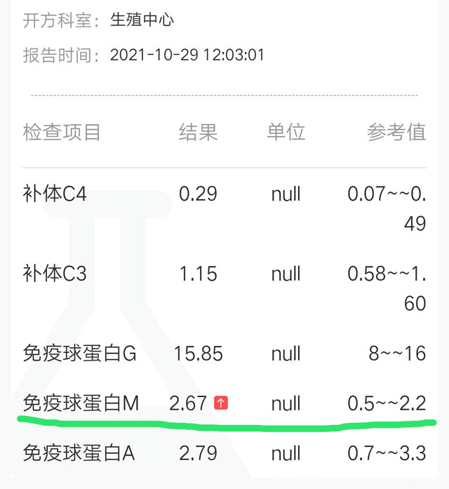 免疫检查中发现:免疫球蛋白M~2.67 ,偏高了,这跟失败有关系吗?