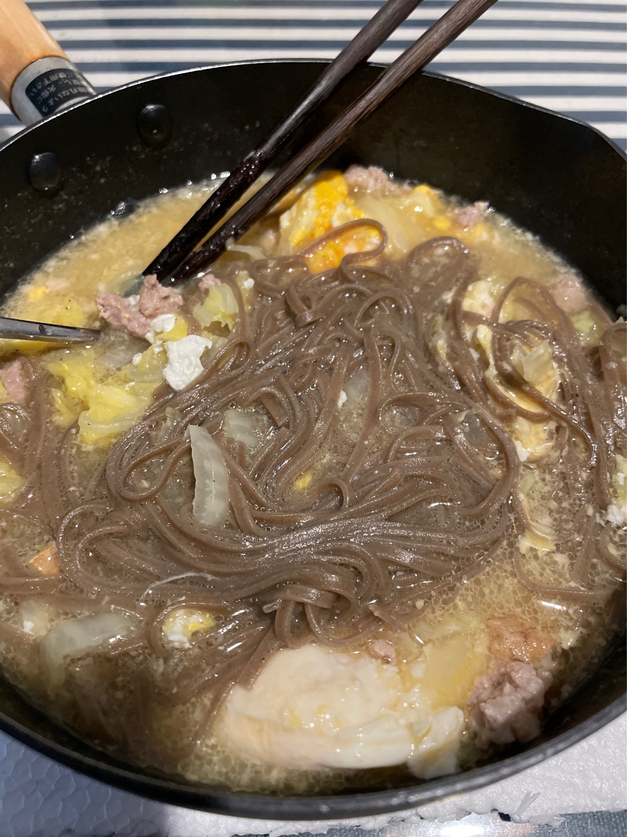 中午还是煮荞麦面吃,加了两片芝士