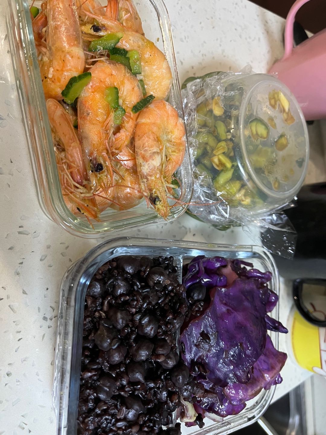 #第3天# 今日打卡,虾🦐,紫包菜,🥒