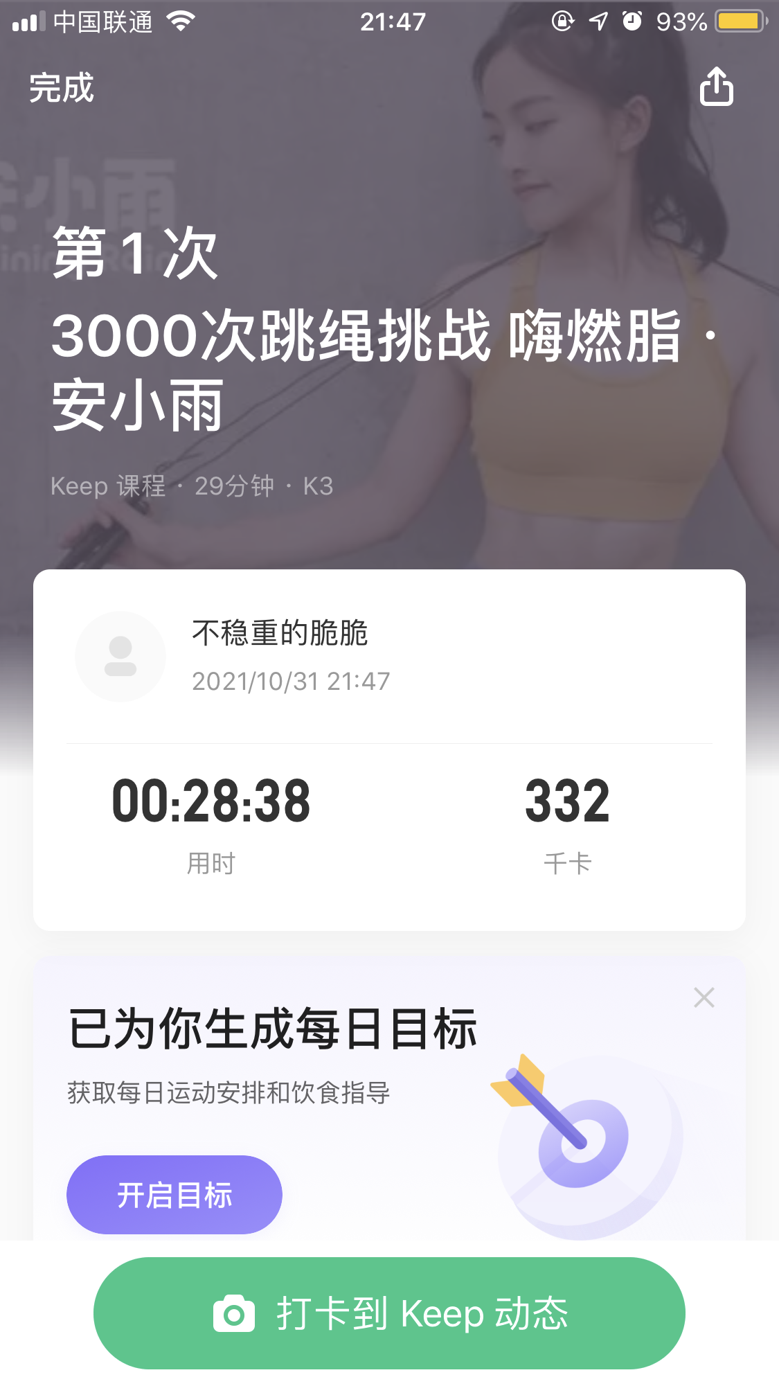 #第6天# 卵泡大了,但是没破,今天加量跳绳,希望这个月能成功