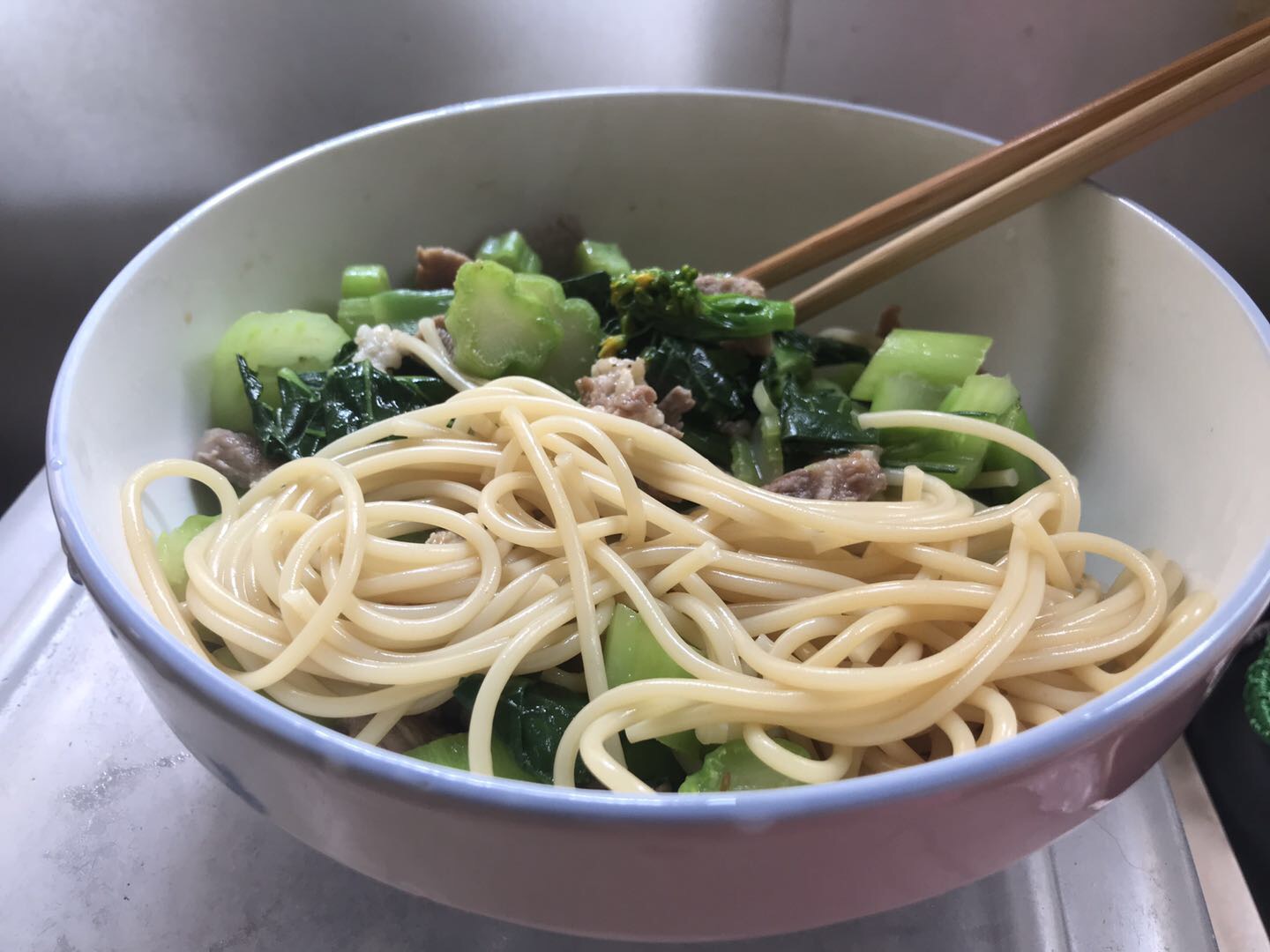 #第5天# 简单来一碗瘦肉青菜拌意粉