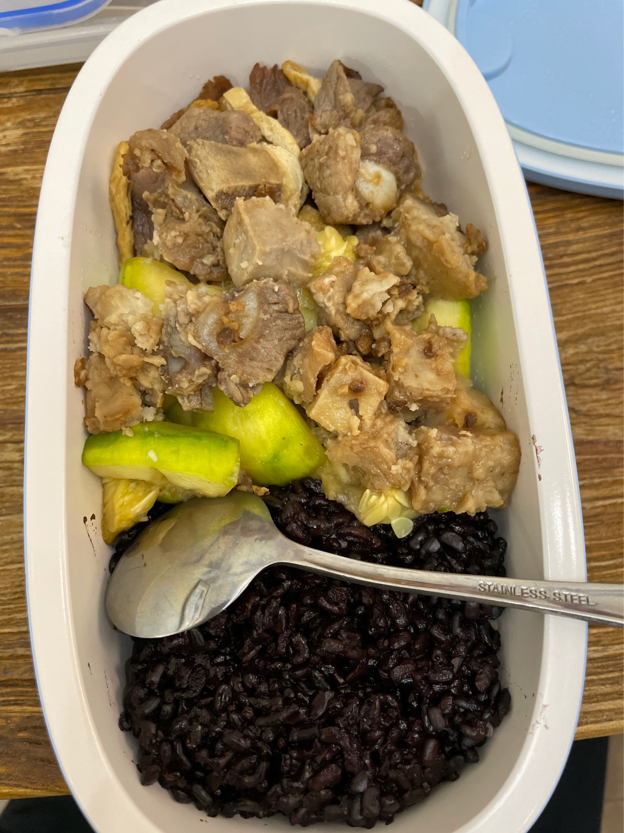 午餐,规规矩矩吃黑米饭,芋头,小南瓜