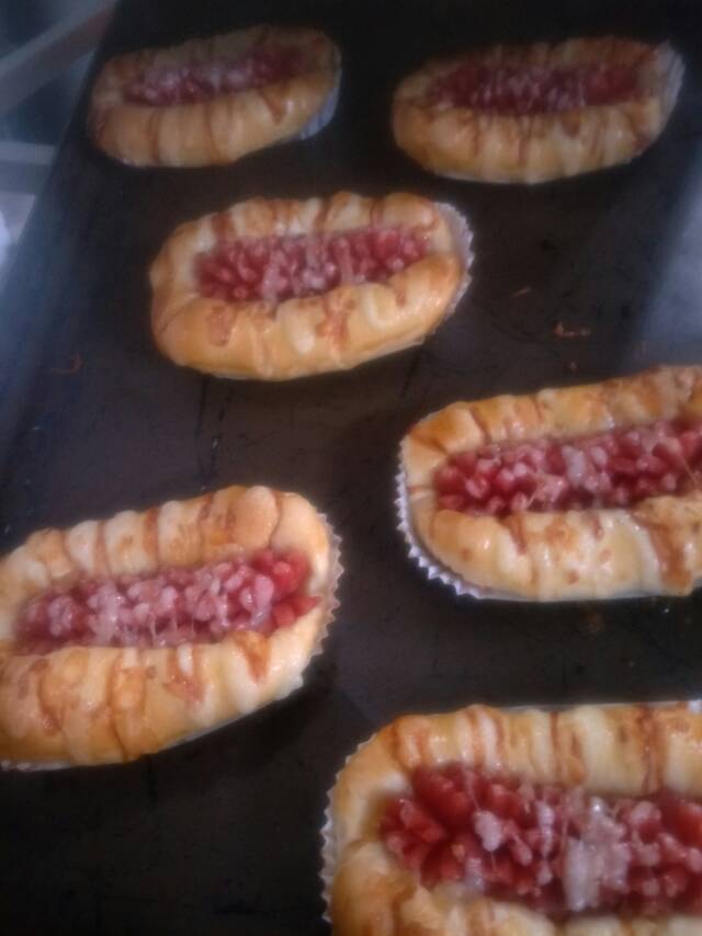 早餐,一个芝士热狗面包,午餐,豆角炒猪肉