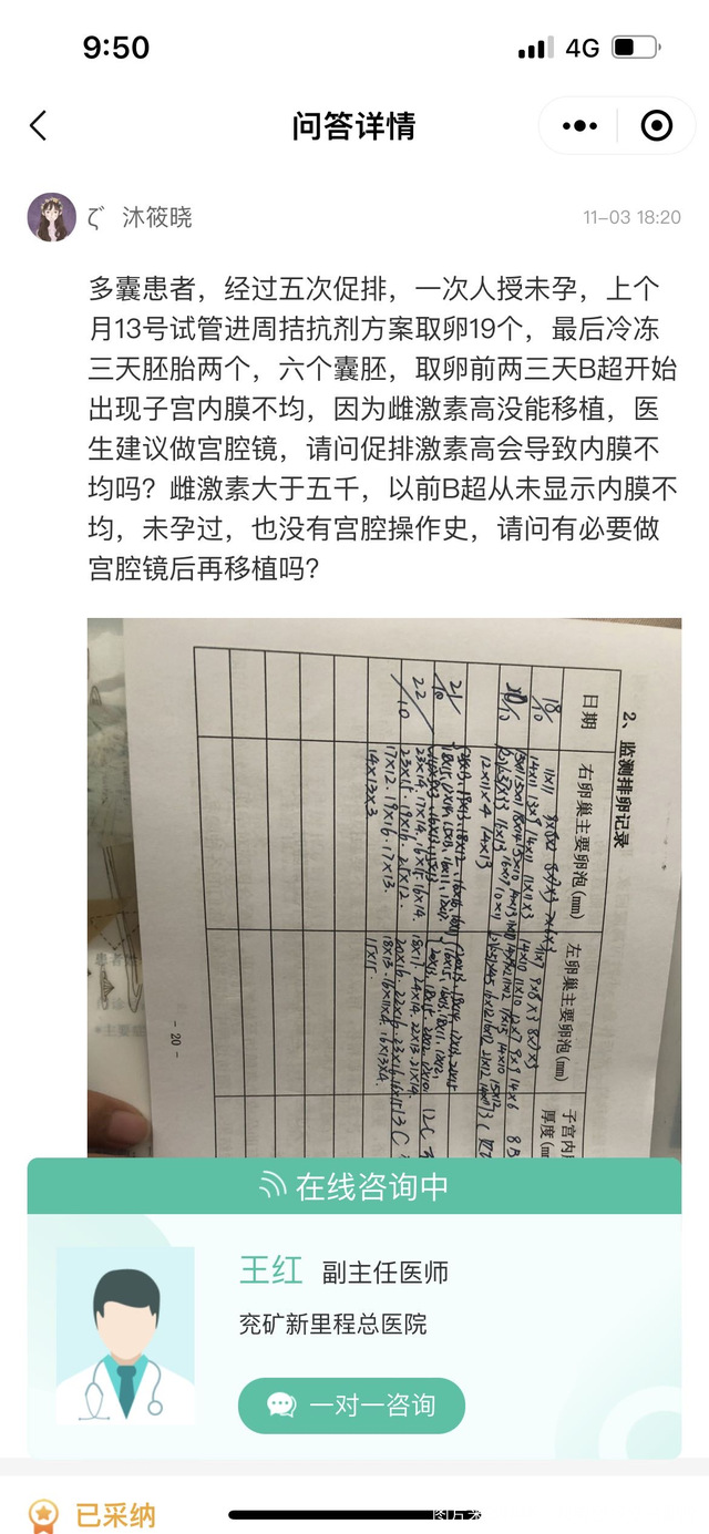 接上个月促排取卵后本月15号做了宫腔镜病理结