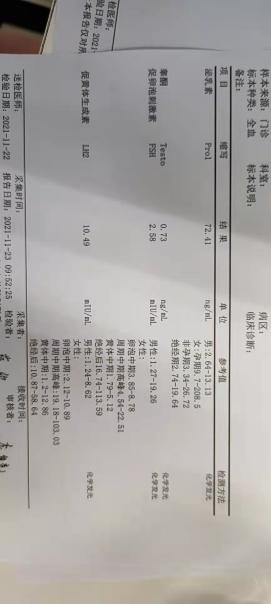 目前在试管中,宫腔镜 cd138极个别吃多西环素,奥硝挫,甲硝唑后查性激素6项,泌乳素72比较高,正常么?会不会影响下个月的移植