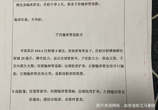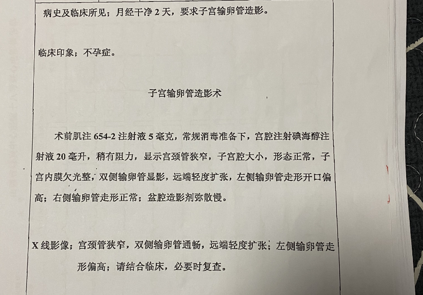 造影显示远端扩张常常是输卵管的畸形,积水或炎症所致其伞端粘连,影响受精和受精卵着床。已经行宫腹腔镜手术 没有积水,通常是炎症所致