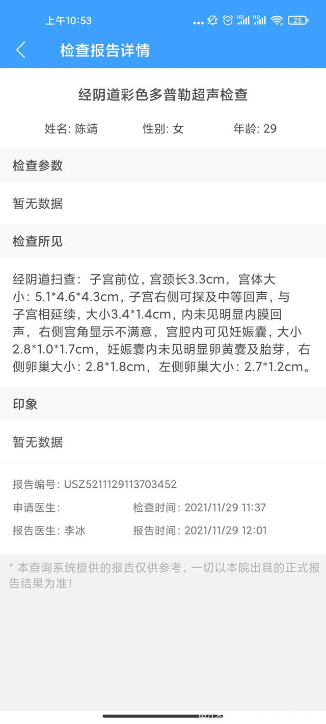 根据你描述的情况,一般最早能在移植后9-10天抽血测出HCG阳性,目前检查结果考虑发育正常,建议放松紧张的情绪,耐心等待1周后复查