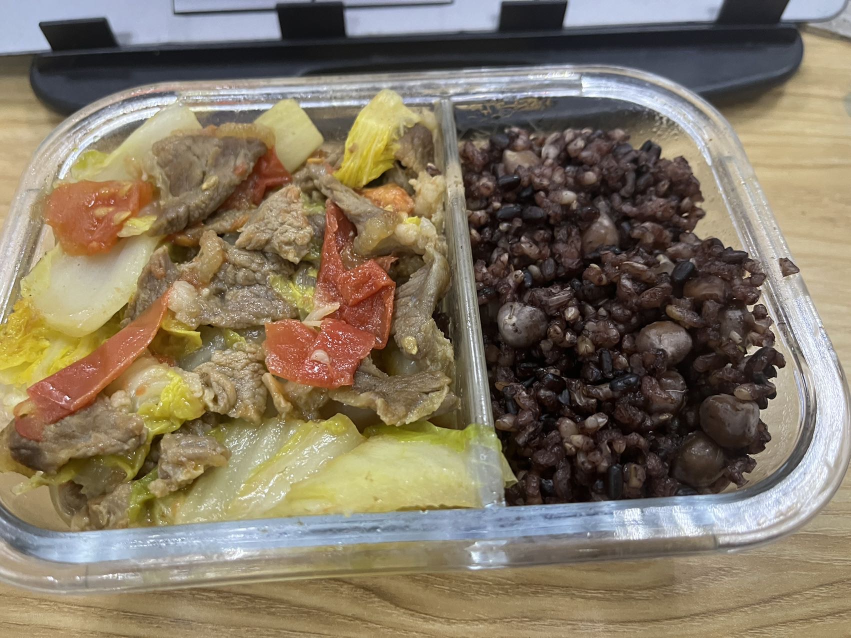今日午饭,白菜牛肉,三色米饭🍚
