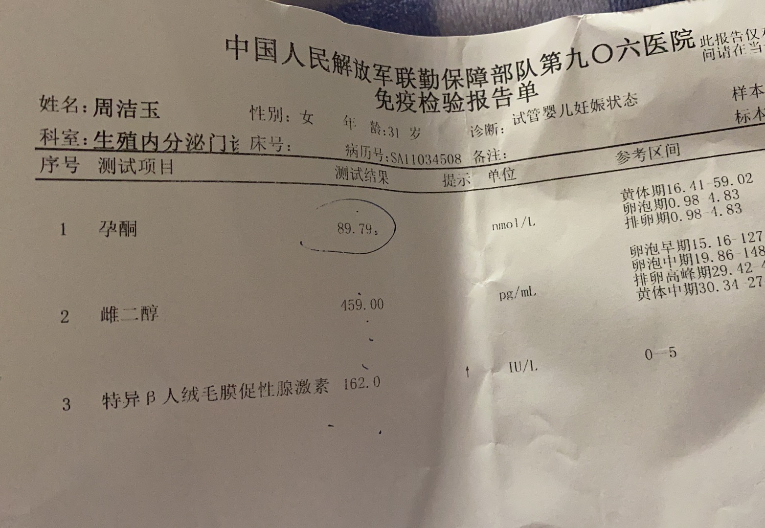 124号囊胚移植1211HCG518孕酮25