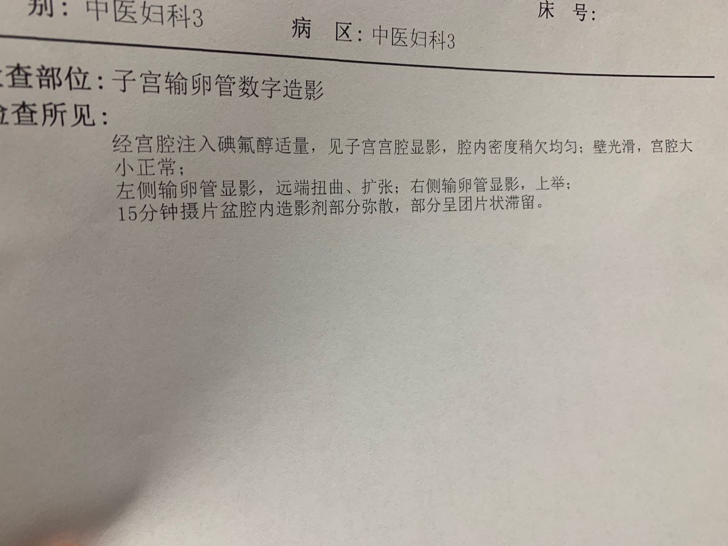 左侧积水,右侧通而不畅,盆腔炎症粘连。移植前,可以先行腹腔镜诊治,以防积水倒流入宫腔,毒害胚胎;防止右侧宫外孕。