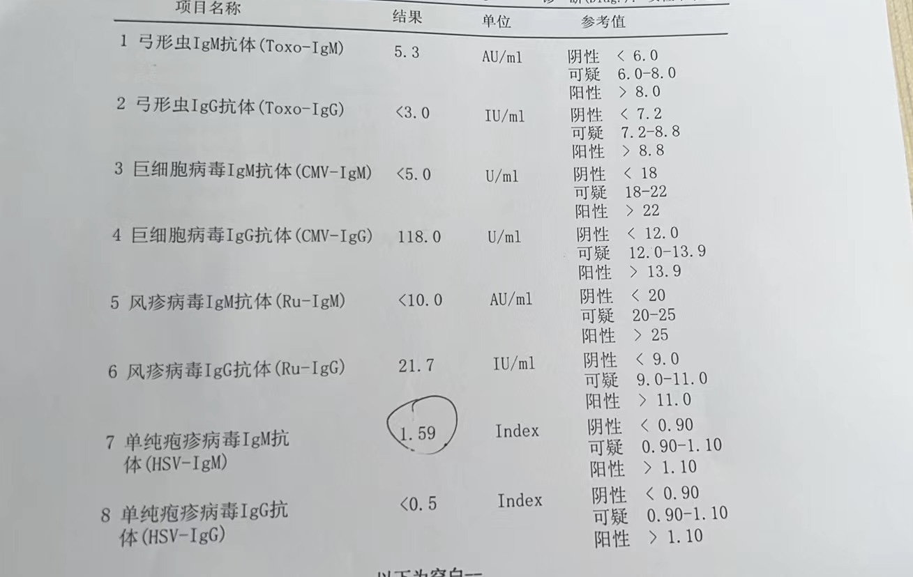 请问医生 第七项 HSV-igM阳性影响吗