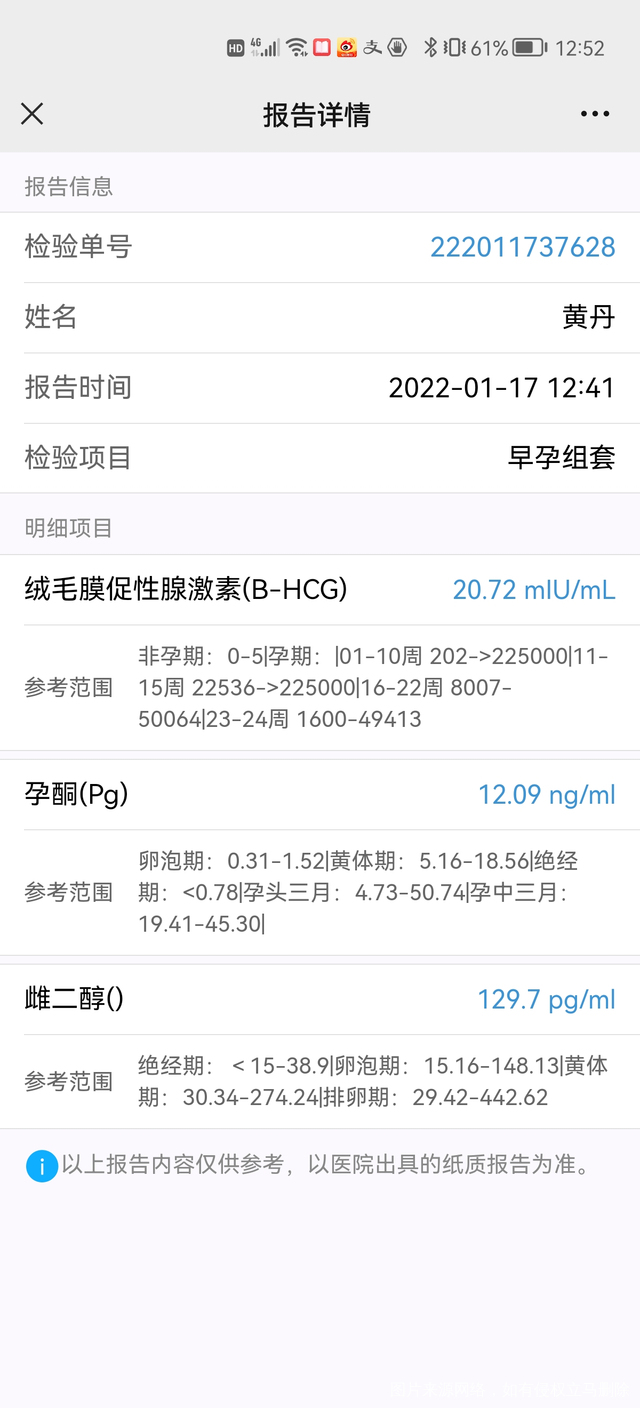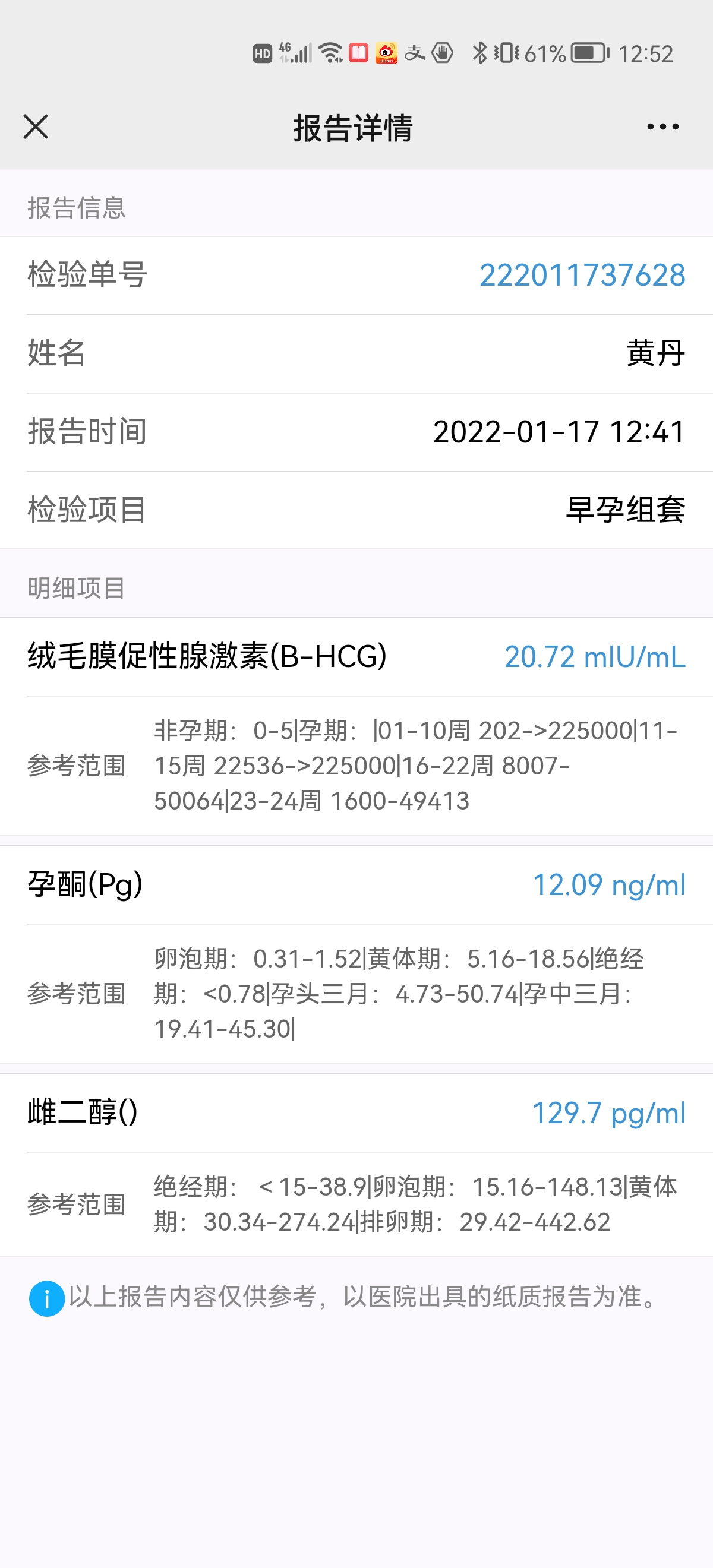 根据你描述的情况,一般最早能在移植后9-10天抽血测出HCG阳性,目前检查结果考虑发育正常,建议放松紧张的情绪,耐心等待1周后复查
