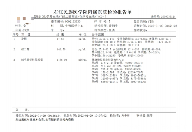 根据你描述的情况,一般最早能在移植后9-10天抽血测出HCG阳性,目前检查结果考虑发育正常,建议放松紧张的情绪,耐心等待1周后复查