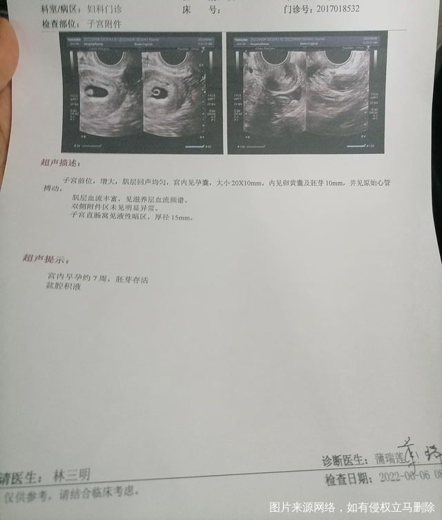 主任,我明明才怀孕6周+2,为什么写着7周了,还有盆腔积液有影响吗?