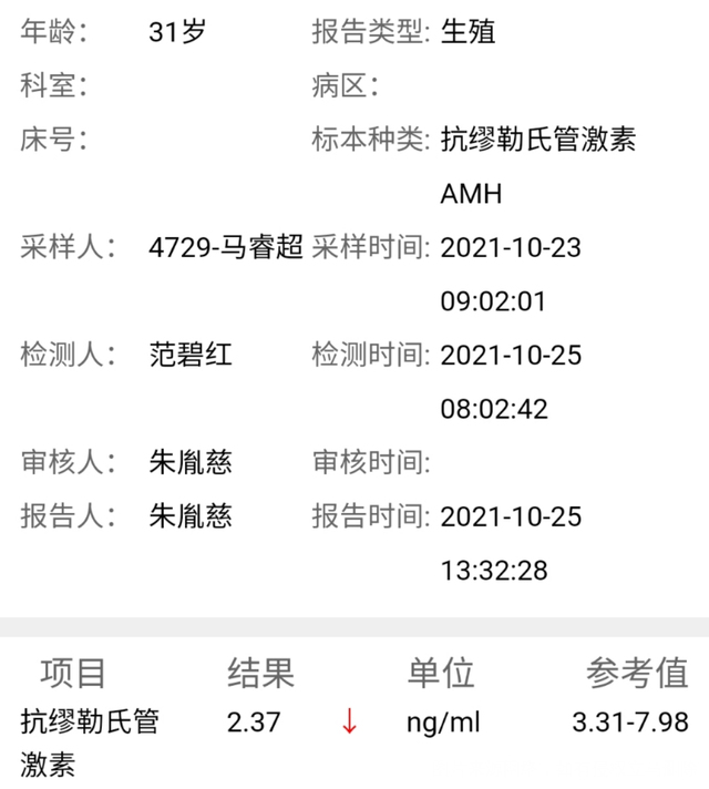 2020年1月查的抗缪勒氏激素值是2.17,后来因为黏液性卵巢囊肿2021年8月做了手术,2021.10又复查了抗缪勒氏激素为2.37,前几天因为B超显示两侧卵巢窦卵泡数量少,总共只有六个,所以又复查了抗缪勒氏激素只有0.85,这个降了好多,不知道试管还没有希望!?