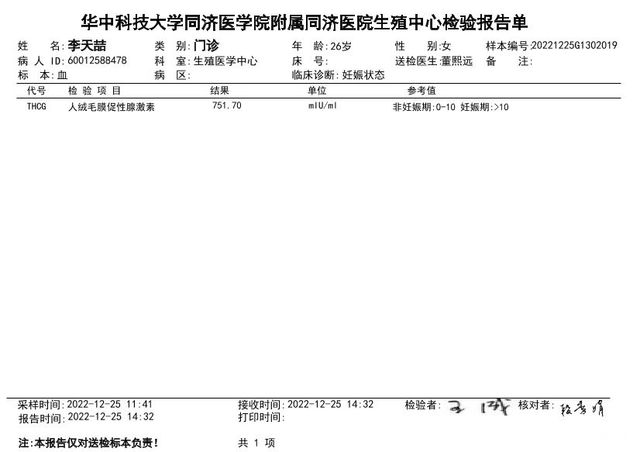 根据你描述的情况,一般最早能在移植后9-10天抽血测出HCG阳性,目前检查结果考虑发育正常,建议放松紧张的情绪,耐心等待1周后复查