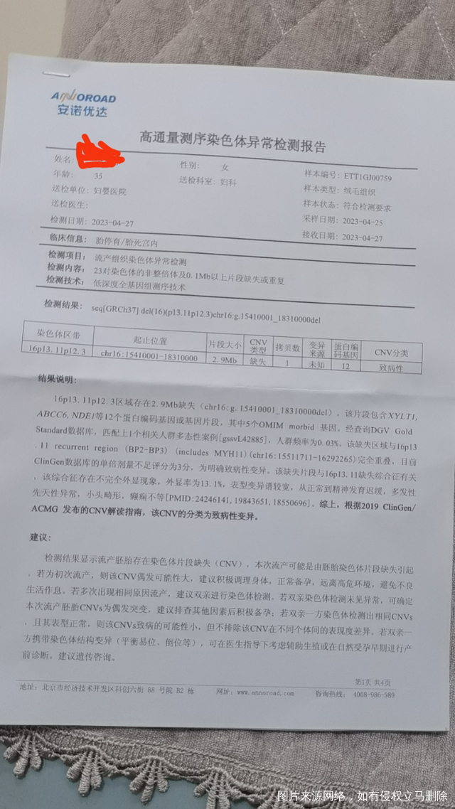 怀孕七周胎停胚胎染色体检查报告麻烦帮我看一下