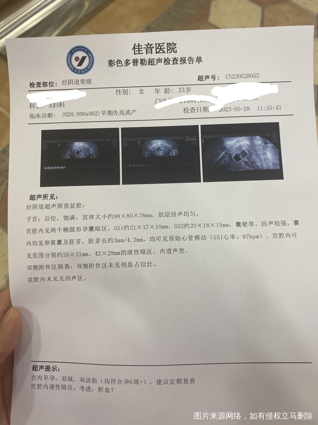 怀孕双胎6周出血做B超宫腔内有积液心胎儿心率