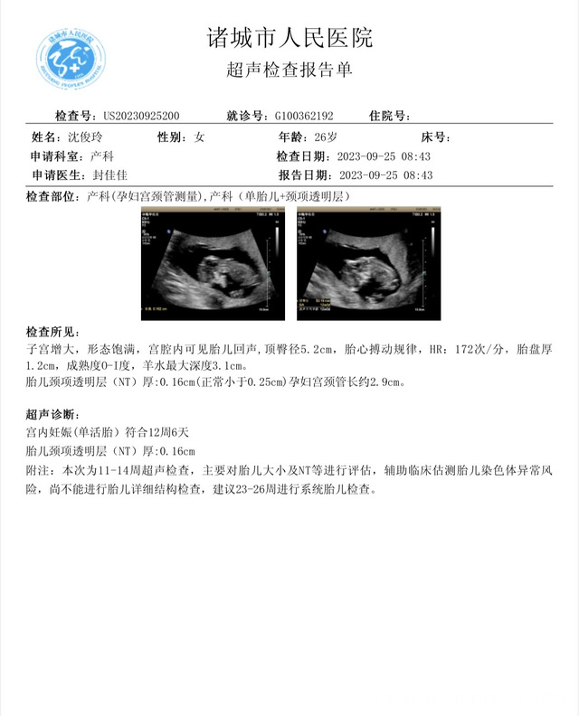 今天是怀孕16周去做了胎心监测还有做了一个B