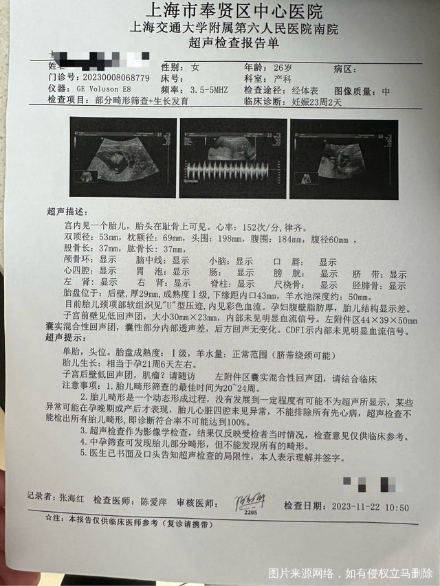 今天是怀孕16周去做了胎心监测还有做了一个B