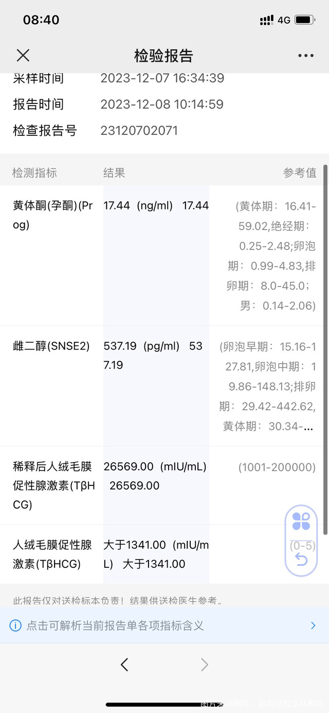 从你描述的情况和化验结果看,翻倍还可以,明天不需要再次测试,可以间隔四天到医院复查一下