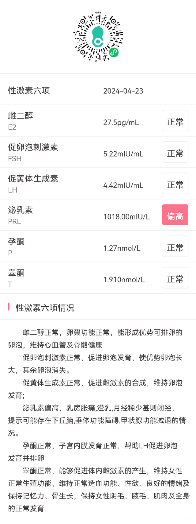 月经拖延十二天才来,胸部有点胀痛,平时都不会。所以查了这个六项激素
