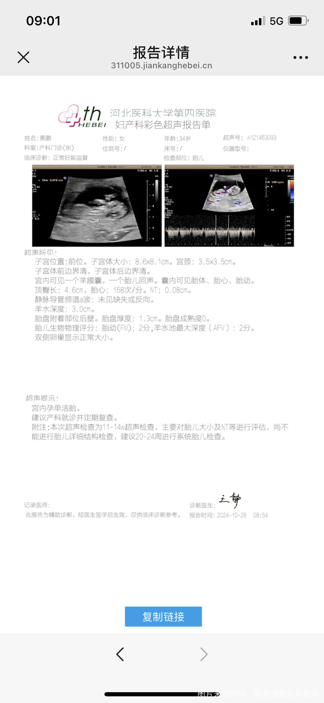 今天是怀孕16周去做了胎心监测还有做了一个B