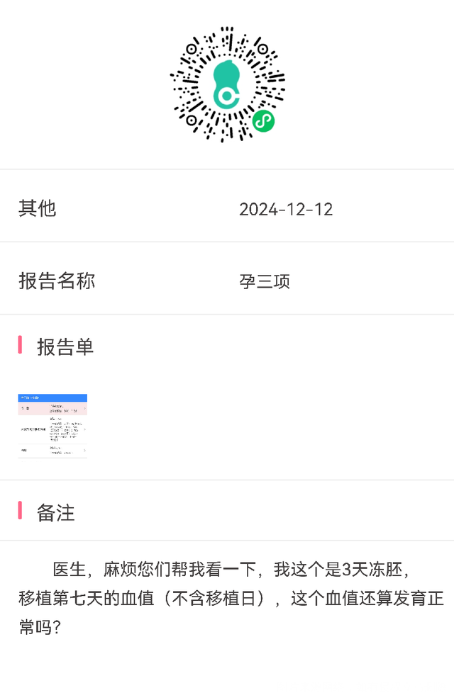 请问医生移植D3冻胚第八天血值110第11天